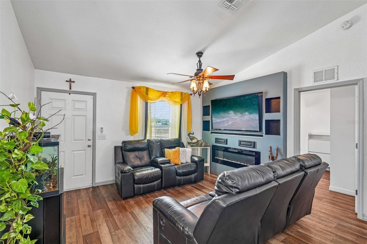 Welcome to this charming single-family home in Ocala, offering 3 bedrooms, 2 bathrooms, and 1,014 square feet of thoughtfully designed living space. Situated on an oversized lot of over a quarter acre, this property provides both comfort and room to enjoy the outdoors. Inside, you'll find an open floor plan that seamlessly connects the living room, dining area, and kitchen, creating a bright and inviting atmosphere. Durable vinyl flooring runs throughout the entire home for a clean, cohesive look. The kitchen is well-equipped with stainless steel appliances, a convenient breakfast bar, and plenty of cabinet and counter space to meet your everyday needs. Just off the kitchen, sliding glass doors lead to a Florida room-perfect for additional living space, a home office, or a relaxing retreat. The split-bedroom layout offers added privacy, with the primary suite featuring its own en suite bathroom with a walk-in shower. Step outside to the true highlight of the home: a spacious, fully fenced backyard designed for versatility and enjoyment. Whether you're entertaining, storing equipment, or working on projects, the impressive detached garage (approximately 21.6' x 31.3') offers exceptional space and flexibility. Conveniently located near grocery stores, golf courses, dining options, and with easy access to major highways, this property blends everyday convenience with comfortable living. Mortgage savings may be available for buyers of this listing.